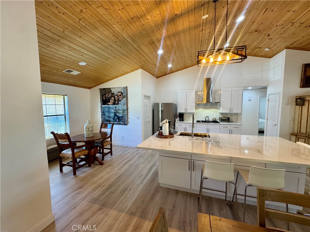 Tucked into the sun-drenched side of Pine Mountain Club—our exclusive, little village where private patrol keeps things safe and nights stay quiet—this-new three-bedroom, two-bath gem clocks in at one thousand eight hundred twenty-eight square feet, the perfect sweet spot for families or easy entertaining. Steps from the clubhouse, nine-hole golf course, sparkling pool, and tennis courts, you’re basically living at the heart of it all—yet it feels like your own hidden escape. High soaring ceilings lift the space, recessed lighting glows warm, quartz counters shine across an open chef’s kitchen with an island for crowds, wood-burning stove ready to crackle on crisp evenings, and mini-split AC humming cool without a fuss. The flowing layout means no walls—just room for game nights, holidays, or lazy Sundays with hill views sneaking in. Bright, airy bedrooms fit growing kids or guests, two full modern baths stay spotless, everything fresh because it’s new. Outside, that massive deck overlooks rolling pines, golden sunsets, and starry skies that hit like diamonds—no city glow, just you and the mountains, space for fire pits, string lights, maybe even a hot tub someday. This isn’t cookie-cutter—it’s a real hidden gem, pristine and built to last.