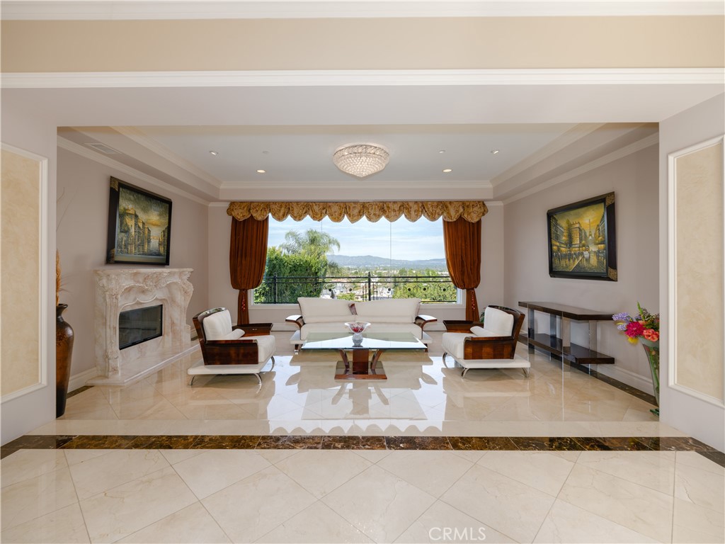 Located behind private gates in one of Encino’s most desirable South of Ventura Boulevard locations, this impressive Mediterranean estate offers exceptional privacy, grand scale living, and panoramic valley views. Built in 2009, the residence showcases timeless architecture and elegant finishes throughout. A dramatic two-story entry with custom wrought-iron double doors, soaring ceilings, and a sweeping staircase creates an unforgettable first impression. Rich hardwood floors, extensive custom millwork, and expansive windows fill the home with natural light while framing beautiful views of the surrounding hills and valley. The thoughtfully designed floor plan offers multiple formal and casual living spaces ideal for entertaining. The gourmet chef’s kitchen with custom cabinetry, stone counters, and center island opens to spacious gathering areas and flows seamlessly to the outdoor entertaining spaces. The expansive primary suite serves as a luxurious retreat, featuring a sitting area with fireplace, balcony overlooking the valley, spa-style bathroom with soaking tub and walk-in shower, and large custom walk-in closets. Additional luxury amenities include a home theater, elevator, fitness room, wet bar lounge, and beautifully appointed bathrooms throughout. Designed for indoor-outdoor living, the resort-style backyard features a sparkling pool and spa, multiple lounge areas, and covered terraces ideal for year-round entertaining while enjoying sweeping valley views. A private gated motor court with expansive paver driveway and attached three-car garage provides ample parking and privacy. Ideally located just minutes from Ventura Boulevard’s premier shopping, dining, and entertainment, this exceptional property offers the perfect blend of luxury, scale, and convenience in the heart of Encino.