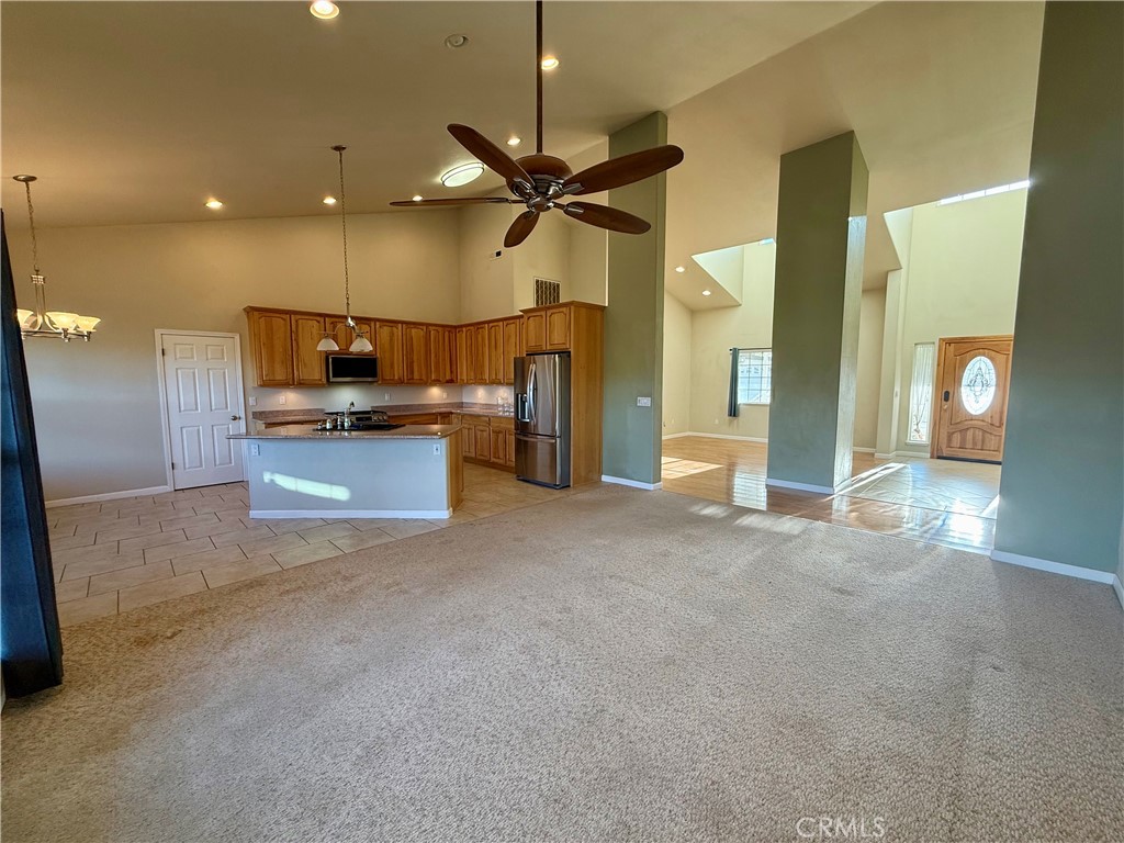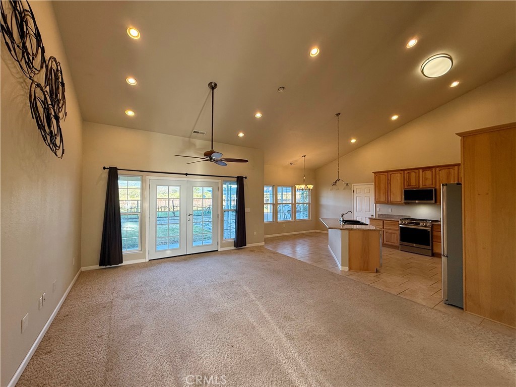 Grand Hidden Valley Lake home on an oversized lot backing directly to Putah Creek! This spacious home features soaring vaulted ceilings and an open, airy floor plan filled with natural light. The formal dining room is perfect for hosting family dinners or gatherings. The kitchen is both functional and inviting, with upgraded stainless steel appliances, granite slab countertops, and a large breakfast nook overlooking the backyard. The living room is open and welcoming with slider leading to covered wrap around porch and patio. The layout offers three generously sized bedrooms, with the private primary suite set apart from the others. The suite is a relaxing retreat with a jetted tub, separate stall shower, dual sinks, walk-in closet, and direct access to the backyard. Outside, you’ll find a space designed for relaxing and entertaining—complete with a hot tub, bocce ball court, and a partially finished outdoor kitchen. There’s even a small vineyard for a touch of charm and the chance to grow your own grapes. A large fenced and gated area provides extra parking for an RV, boat, or additional vehicles, and the home also features owned solar. With great space, privacy, and unique outdoor features, this home just needs a little cosmetic updating to really make it shine.