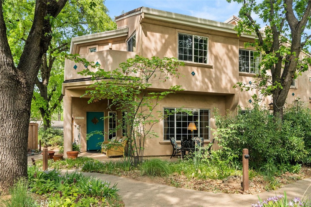 Nestled in the heart of Chico, 1997 Wild Oak Lane offers a unique opportunity to be a part of Valley Oaks Village in a thoughtfully designed Cohousing community—where connection, sustainability, and modern living come together seamlessly. Located just blocks from Bidwell Park in Chico, this home provides a rare blend of private comfort and shared amenities that foster a true sense of community. This inviting home features a bedroom and bathroom downstairs and a large living room with stunning bamboo flooring. The open concept kitchen includes granite countertop overlay, stainless steel appliances, and plenty of cabinetry. Check out the beautiful all inclosed sunroom that invites an abundance of natural light into the home. Upstairs offers a newly remodeled bathroom with Jacuzzi tub, quartz countertops, and laminate flooring. One of the two bedrooms features a secondary loft, perfect for a twin bed or extra storage. The primary bedroom highlights its own balcony and an en suite bathroom with a large tiled shower. Laundry closet is located upstairs and includes a flood stop system. In the backyard you will find patio pavers perfect for an herb garden or gathering space, and a newer 6×8 shed. Plug your EV car into the newly installed level 2 wall box with a 40 amp charger. As part of a Cohousing development, residents enjoy access to shared amenities such as a pool, sauna and an outside shower, bike storage sheds, a woodworking shop and craft room, large grassy area with a small playground, community garden, and gathering spaces—perfect for hosting events, shared meals, or simply connecting with neighbors. The community common house features an industrial sized kitchen, library, lounge room with wood burning stove, game room, laundry room, and even extra guest bedrooms. The community is intentionally designed to promote collaboration while still maintaining the privacy of individual homes. If you’re seeking a more connected way of living, 1997 Wild Oak Lane presents a truly special opportunity in one of Chico’s most unique residential townhouse communities.