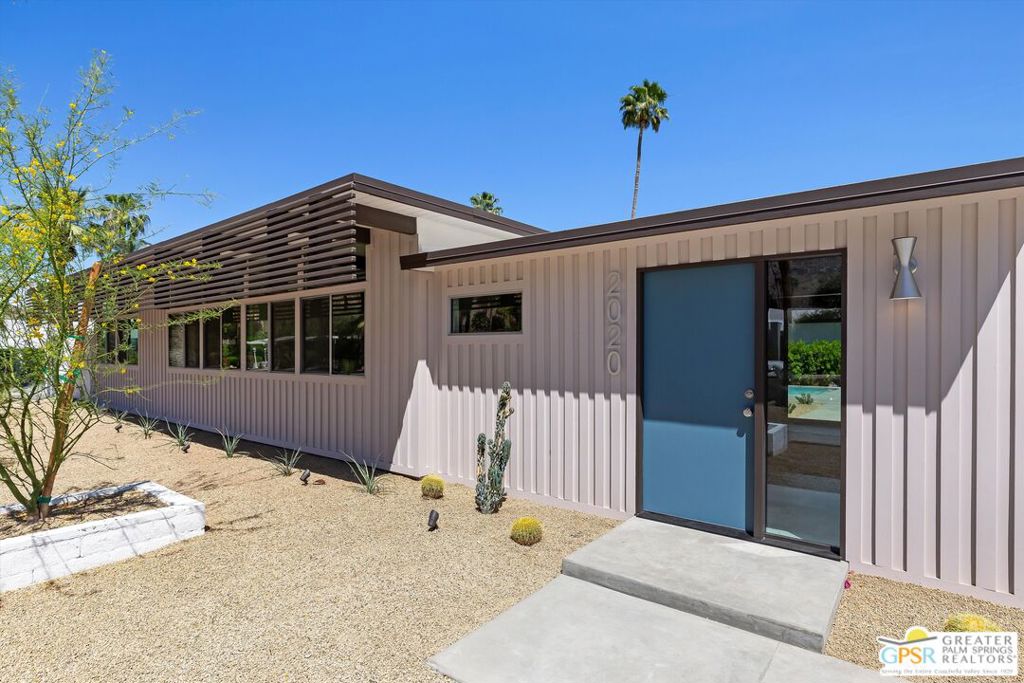 Originally designed by William Krisel for the Alexander Construction Company, this Twin Palms residence exemplifies the linear clarity and disciplined simplicity of International Style architecture within an iconic Alexander home. Krisel’s flat-roof, post-and-beam composition can be read as a subtle homage to Japanese pavilion architecture, expressed through a strong horizontal rhythm. Linear continuity is evident throughout from the articulated sunshades and fireplace detailing to the exposed beams that draw the eye from front to back, extending into the refined lines of the newly reimagined kitchen. A rare and compelling departure from conventional mid-century coloration, the home offers a sophisticated and elevated interpretation of modernism, defined by dark, handsome detailing and a soft, creamy interior palette.Equally notable is the home’s highly uncommon layout for Twin Palms: a dedicated interior laundry room, three full bathrooms, and two ensuite bedrooms features seldom found within the neighborhood’s original configurations. The comprehensive renovation includes all new plumbing (including waste lines), fully updated electrical systems, a brand-new HVAC system, and new doors and windows throughout. Exterior improvements include redesigned hardscape, a newly plastered pool, and a brand-new spa. The kitchen and all three bathrooms have been completely re-envisioned with a cohesive, design-forward approach