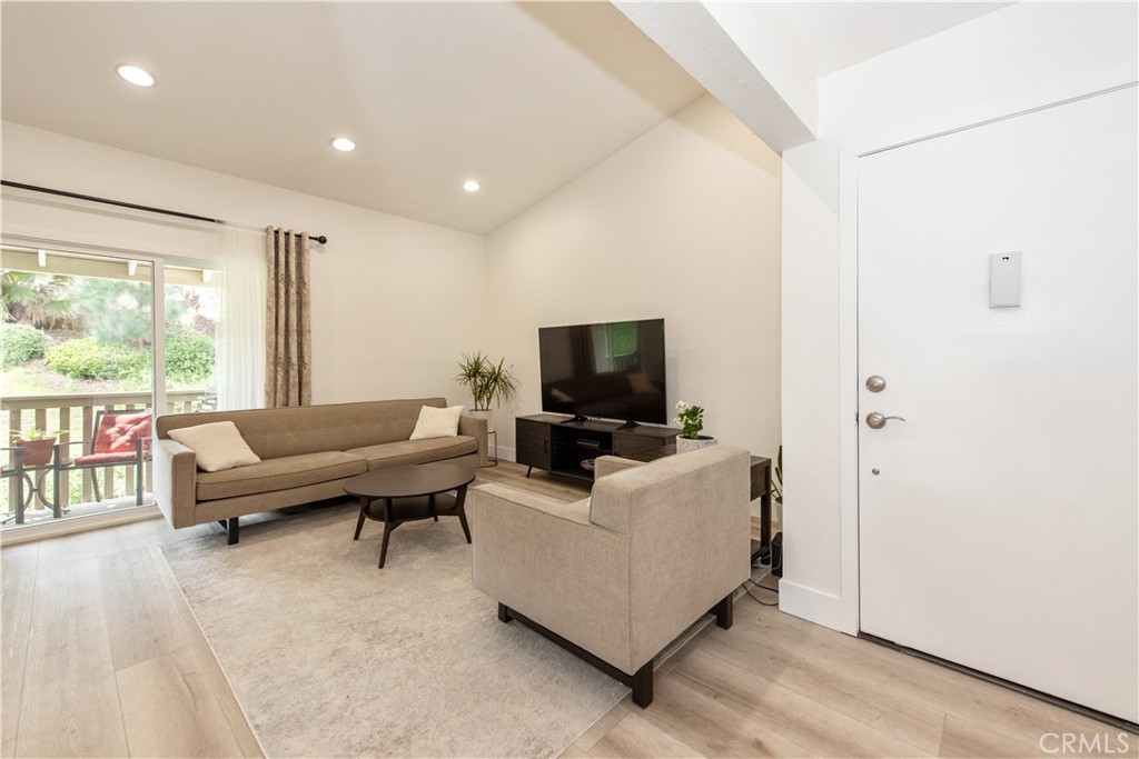 Come see this charming two-bedroom, upper-level end-unit condo nestled in the sought-after Valencia community, offering 812 sq ft of modern living space. Enjoy year-round comfort with a brand-new central air conditioning and heating system—no more unsightly space heaters or coolers. This home has been beautifully updated with new windows in the living room and bedrooms, luxury plank vinyl flooring throughout, new doors and trim, and fresh interior paint. As you enter, you’ll immediately notice the bright and airy feel, enhanced by vaulted ceilings, recessed lighting, and an open-concept floor plan. The kitchen features granite countertops, stainless steel appliances, white shaker cabinets, a double sink, and a breakfast bar accented with contemporary pendant lighting. Step outside to the private balcony off the living and dining areas, where you can relax or BBQ while enjoying peaceful hillside views with mature trees. Additional conveniences include a full-size washer and dryer in a private balcony closet, a designated parking space directly in front of the unit, ample guest parking, and an outdoor storage closet. As a resident, you’ll enjoy exclusive membership to Lake Mission Viejo through the HOA, offering a sandy beach, swimming, boating, kayak and paddleboard rentals, sports courts, picnic areas, summer concerts, and year-round activities. Ideally located with easy access to the 5 Freeway, shopping, dining, and entertainment. Walking distance to Alicia Park and top-rated schools. This thoughtfully updated home offers comfort, style, and an unbeatable location—don’t miss it!