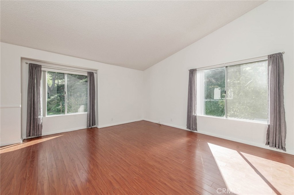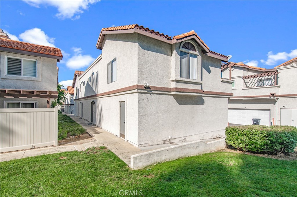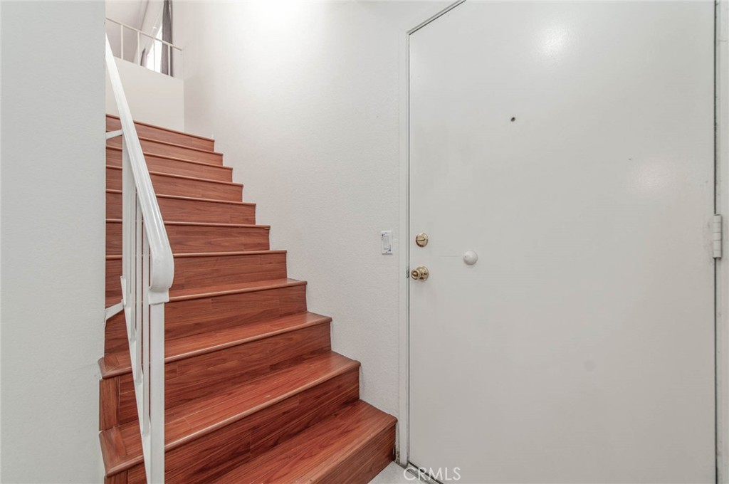A Second level open layout high ceiling condo with balcony with view of the community green field and hillside. Ground level direct entry 2 car garage. Newly painted interior and wood flooring throughout the living area with Fireplace. One master bedroom suite and an additional bedroom with shared bathroom. HOA includes water and trash. Community with pool & spa, city park with playground, skatepark, and baseball field. Nearby Shopping and Market, easy drive to 60&57 freeway.