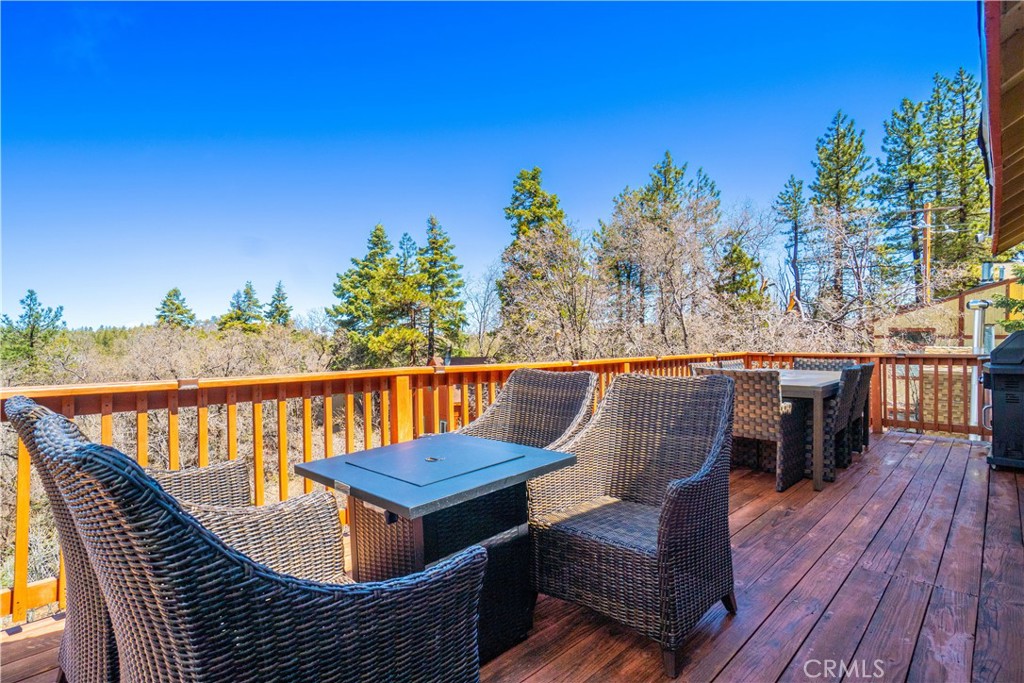 Tucked into the pine and oak forest of Green Valley Lake, this turnkey modern lodge-style mountain home offers the perfect blend of rustic charm, comfort, and convenience. Set on a ridgeline with panoramic western views to Mount Baldy, the home captures spectacular sunsets and a peaceful forest setting. Built in 2007 with an open-concept design, it features vaulted tongue-and-groove pine ceilings, a stunning floor-to-ceiling river rock fireplace, spacious living and dining areas, and a well-appointed kitchen designed for gathering and entertaining. Offered fully furnished and equipped for immediate use, this home is ready to enjoy from the moment you arrive. Recent improvements include a natural gas whole-home back-up Generac generator, full exterior repainting, driveway and deck staining, and a 240V EV charger installed in 2024. The kitchen has also been updated with new Samsung appliances, including a refrigerator, dishwasher, microwave, and gas range, all installed in December 2025. Central heat and air conditioning add year-round comfort, while the inviting decks provide the perfect place to unwind and soak in the mountain air and sweeping views. Just a short stroll to the lake, boating, fishing, hiking, dining, and the village general store, this is an ideal full-time residence, weekend retreat, or furnished investment property. Snow Valley, Lake Arrowhead, and Big Bear are all within easy reach. Possible third-level addition potential offers added flexibility and future opportunity.