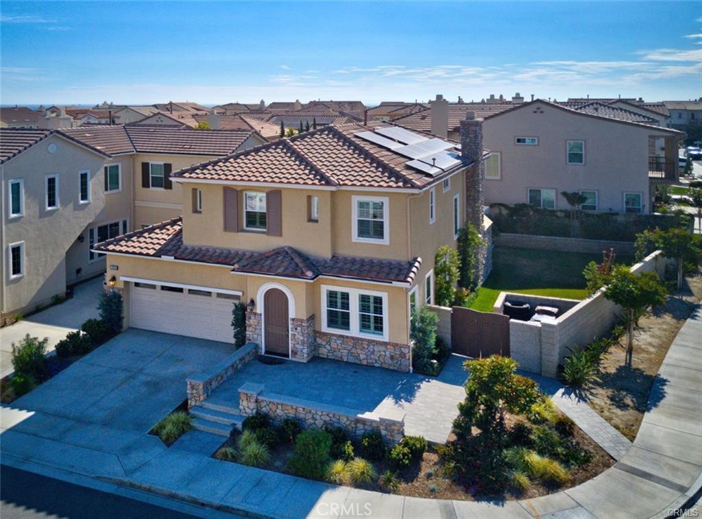 This stunning 4-bedroom Toll Brothers home at the Vista Del Verde is exactly what you’ve been waiting for! Nestled on a spacious corner lot, this beautifully upgraded residence exudes elegance as you approach. Step through the charming front porch and arched entry into a welcoming formal living and dining room. The rich espresso wood flooring flows seamlessly throughout the first floor, complemented by crown molding and plantation shutters that enhance the home’s refined ambiance. As you continue through, you’ll find a spacious great room featuring a cozy family room with a fireplace and built-in entertainment center, a bright breakfast nook, and a chef’s dream kitchen. The kitchen boasts gleaming granite countertops, beautiful espresso wood cabinetry, and high-end stainless steel appliances, including a double oven, gas range, built-in microwave, and dishwasher. A large walk-in pantry, along with ample cabinet and counter space, adds to the home’s functionality. French doors open to a covered patio, expanding your living space outdoors. The backyard is perfect for entertaining, featuring a built-in BBQ island with a firepit, along with a large grassy area that offers plenty of room for a pool. Upstairs, the expansive master suite provides space for a home office and includes a luxurious en-suite bathroom with a soaking tub, walk-in shower, double vanity, and an enormous walk-in closet. Two additional secondary bedrooms share a full bathroom with a double vanity, and the fourth bedroom has its own ensuite bathroom. All bedrooms are equipped with plantation shutters and cooling ceiling fans. Plus, enjoy the convenience of an upstairs laundry room! This home is not only stylish and functional but also energy-efficient! A large array of solar panels on the roof, combined with a Tesla Powerwall in the garage, ensures significant energy savings for the future owner. These eco-friendly features provide sustainable power, reduce utility costs, and offer backup energy during outages, making this home as practical as it is beautiful. This home offers the perfect blend of style, comfort, and functionality. Don’t miss out – make it yours today!