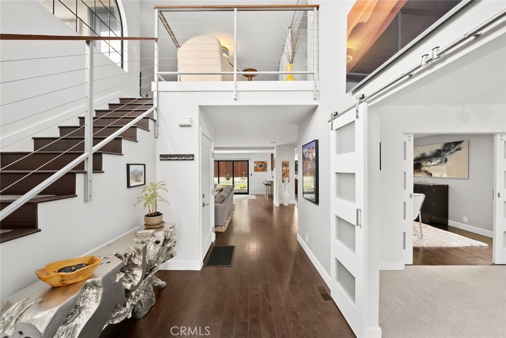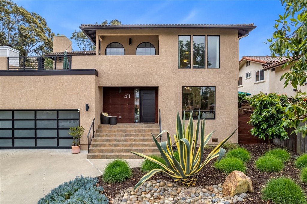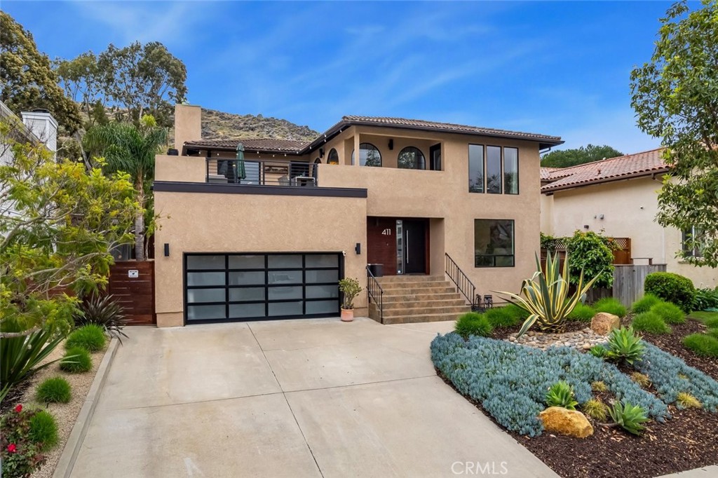 Spectacularly remodeled and thoughtfully designed, this stunning home offers almost 2,800 square feet of open, functional living space in one of the most coveted pockets of San Luis Obispo. Featuring 3 bedrooms, 3 bathrooms, a dedicated office or bonus room, and an upstairs loft, this residence perfectly blends modern comfort with everyday livability. Ideally located just a block from Meadow Park, scenic walking paths, and nearby hiking trails, the home provides effortless access to both nature and downtown amenities—capturing the very best of the San Luis Obispo lifestyle. Step inside to soaring ceilings, designer lighting, and a striking modern railing that frames the upstairs loft. The main living level showcases beautiful wood flooring throughout and a completely remodeled kitchen outfitted with soft-close cabinetry, quartz countertops, island, a stylish tile backsplash, and ample space for both cooking and entertaining. The spacious dining and living areas are anchored by a modern gas fireplace with a sleek tile surround, creating a warm yet contemporary focal point. A three-panel sliding door opens to a beautifully landscaped backyard featuring a fire pit area and plenty of space for gardening or relaxing outdoors. Also on the main level, a generous office or bonus room—complete with a sliding barn doors and large picture window—offers flexibility and inspiring views of the surrounding neighborhood and mountains. Upstairs, a custom wire-railed staircase leads to a versatile loft and sitting area with direct access to a spectacular view deck overlooking Cerro San Luis Obispo, the park, and the surrounding hills. The luxurious primary suite features a large picture window, walk-in closet, private access to the deck, and a fully remodeled en-suite bathroom with dual vanities, a frameless glass shower with a rain showerhead. Two additional bedrooms share a well-appointed upstairs bathroom. Additional highlights include a two-car garage with a modern glass door and epoxy flooring, as well as a dual-zone heating and air conditioning system for year-round comfort. With striking modern curb appeal, clean architectural lines, a contemporary glass garage door, and drought-resistant landscaping, this home truly stands out. All of this is set in a peaceful neighborhood just moments from town, parks, and trails—offering the perfect balance of tranquility and convenience.