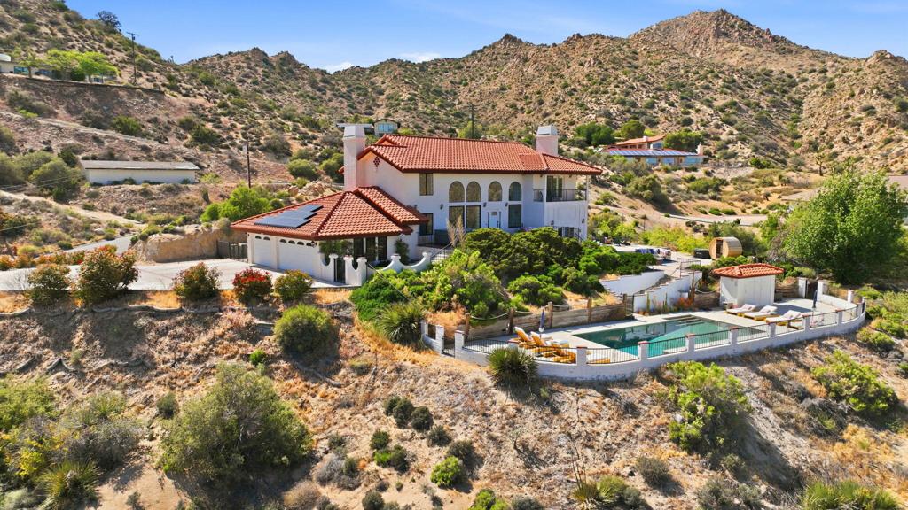 A designer desert oasis spanning over 2.5 acres in the prestigious Country Club area of Yucca Valley with proven short term rental income. This view estate delivers a rare combination of luxurious desert living, modern elegance, and serene natural surroundings, making it an exceptional opportunity for homeowners and investors alike.Recently upgraded inside and out, this private pool home showcases unobstructed panoramic views, classic Spanish architectural elements, soaring ceilings, a relaxing fireplace, an entertainer’s bar, formal living areas, a gourmet kitchen, a dedicated game room, and more.Step outside to an entirely new pool deck featuring a PebbleTec finish and sweeping canyon views that stretch for miles. This is more than a home. It is a private wellness destination where you can host your own sound bath sessions, practice yoga in total serenity, explore private hiking trails, or unwind in the jacuzzi while taking in the landscape.Additional highlights include new landscaping, updated lighting throughout, a steam shower, Tesla EV charging station, fully paid off solar, and a newly paved private trail.Furniture may be negotiable. Located just minutes from Joshua Tree, Pioneertown, and the best dining and nightlife the Hi Desert has to offer.