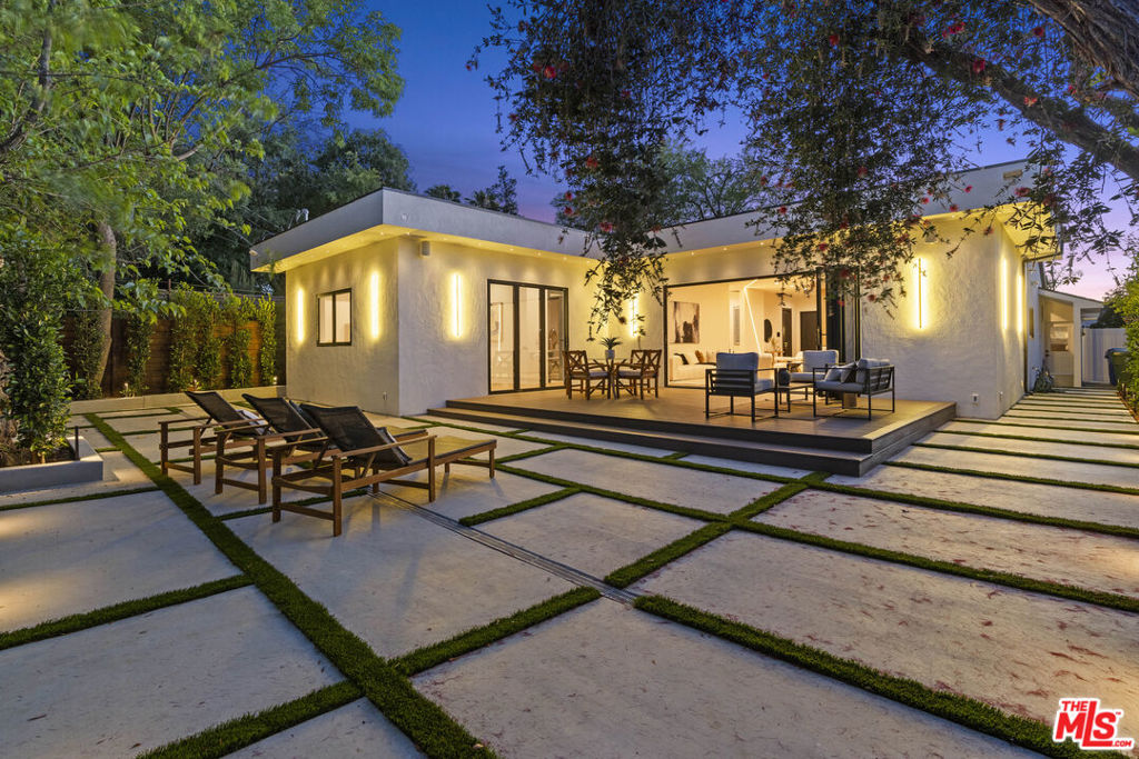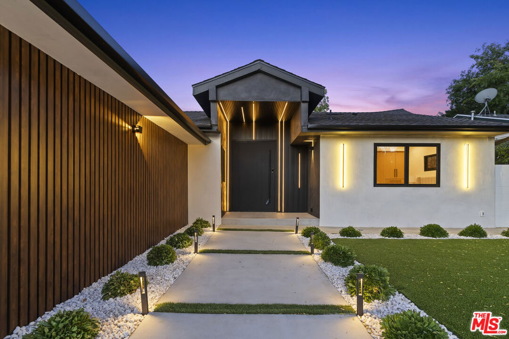 Welcome to this exquisite modern estate in the heart of Encino. This magnificent single-story residence offers 4 bedrooms and 4 bathrooms, thoughtfully designed with elegance, comfort, and seamless indoor-outdoor living in mind. As you step inside, you are greeted by an open-concept floor plan that flows effortlessly from the entryway to the backyard. The chef’s kitchen features custom cabinetry, premium Thermador appliances, a sleek modern island, and a spacious walk-in pantry with direct access to the garage perfect for everyday convenience. The living room is light-filled and inviting, highlighted by expansive sliding pocket doors that beautifully blur the line between indoor and outdoor living. Just off the entry, you’ll find a well-appointed in-law suite complete with its own bathroom and a custom-designed closet ideal for guests, extended family, or a private home office. The primary suite is a true retreat, featuring a luxurious spa-inspired bathroom, a thoughtfully designed walk-in closet, and sliding pocket doors that open to a serene outdoor deck, creating a peaceful and airy ambiance. Two additional bedrooms are conveniently located on the same wing, along with a dedicated laundry area and a stylish powder room. Beautifully landscaped front yard offers great curb appeal with clean modern lines, mature greenery, and a welcoming entry. The private backyard is designed for both relaxation and entertaining, featuring low-maintenance landscaping, ample space for outdoor dining and BBQ, and a serene setting ideal for gatherings or quiet evenings under the stars. Prime Encino location, centrally situated near parks, convenient freeway access, and an array of top dining and shopping options.