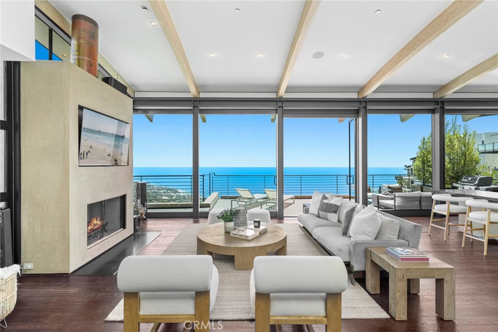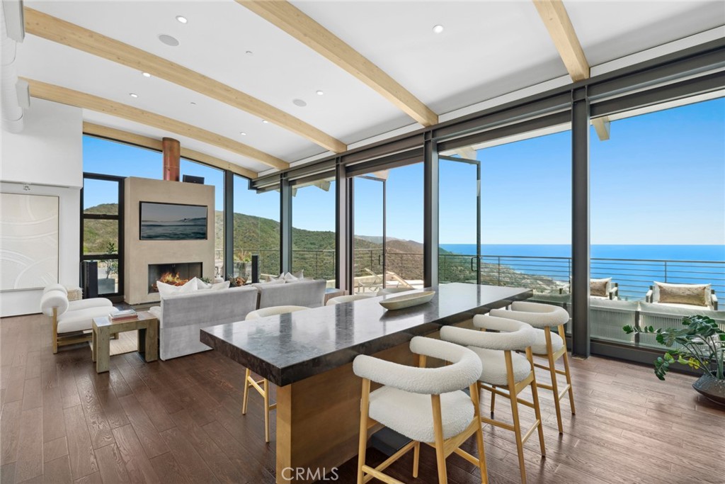 Retreat to a private world of luxury and breathtaking ocean and whitewater views at this spectacular custom home in Laguna Beach. Designed by award-winning architect Mark Singer, the meticulously crafted masterpiece invites panoramic views into dramatic living spaces. Pacific Ocean, canyon and city-light views lend enchantment to dinner parties and relaxed evenings. A long paver-finished driveway with ample parking enhances the feeling of privacy at the residence, which elevates sophistication on a homesite spanning nearly 8,432 square feet. Seemingly above it all, with vistas that encompass colorful sunsets and ever-changing skies, the home is designed to erase the line between indoors and out, with floor-to-ceiling walls of glass that are mitered at corners. On the main level, windows envelop an impressive great room crowned by an arched and beamed ceiling that soars over the living and dining areas. Anchored by a gas fireplace, the great room opens to a wraparound ocean-view deck. Skylights illuminate the adjacent kitchen, where custom Siematic cabinetry, open shelving and Caesarstone countertops are proudly displayed. Chefs will appreciate the convenience and style of a dumbwaiter, large island, glass backsplash, and a fully appointed butler’s pantry. Top-tier appliances include a six-burner Wolf range and a built-in Sub-Zero refrigerator. High-end concrete, wood and stone finishes complement the home’s modern aesthetic, and a fabulous open staircase provides passage to the lower level. Approximately 3,537 square feet, the residence features four ensuite bedrooms and four- and one-half baths. Secondary suites open to view-enhanced decks, and the primary suite, wrapped in walls of glass, appears to float above the sea. The lux primary bedroom and bath boast an oversized walk-in shower with incredible ocean views, a freestanding soaking tub and a spacious walk-in closet. A bedroom on the main level, a security system with cameras, and solar power are featured. This one-of-a-kind home’s enviable privacy belies its close proximity to beaches, restaurants and shopping. Montage Resort and The Ranch at Laguna Beach are just minutes away, award-winning schools serve the community, and Laguna’s village and Main Beach are only moments away. Imagine, for a moment, sharing a residence of this caliber with the people you love…make it yours today.