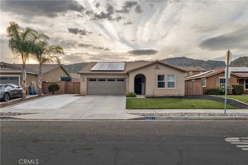 Stunning Turn-Key Residence in The Cove. This meticulously maintained home in the sought-after Cove community exemplifies true pride of ownership. Boasting a “like-new” feel, this residence offers a seamless blend of modern comfort and thoughtful design. Sophisticated Living Spaces As you enter, you are greeted by an expansive open-concept living and dining area, perfect for both quiet evenings and large-scale entertaining. The heart of the home features: • Chef’s Kitchen: Equipped with a large breakfast bar, ample counter space, and a dedicated pantry for superior organization. • Split Floor Plan: Designed for maximum privacy, the secondary bedrooms are located toward the front of the home, while the primary suite serves as a quiet retreat in the rear. Private Accommodations • Primary Suite: A spacious sanctuary featuring a large walk-in closet and a private ensuite bathroom. • Secondary Bedrooms: Two well-appointed bedrooms with plush carpeting and ceiling fans, sharing a conveniently located full bathroom. • Functional Laundry: A dedicated laundry room provides a practical transition between the living areas and the garage. Exceptional Outdoors & Efficiency • Outdoor Living: The beautifully manicured backyard features a lush lawn and a covered patio, ideal for al fresco dining. • Sustainability: Enjoy the financial benefits of a fully integrated, paid-off solar system, designed to offset electricity costs. • Parking & Storage: A spacious 2-car garage provides plenty of room for vehicles and additional storage needs. This home is truly move-in ready and stands in impeccable condition.