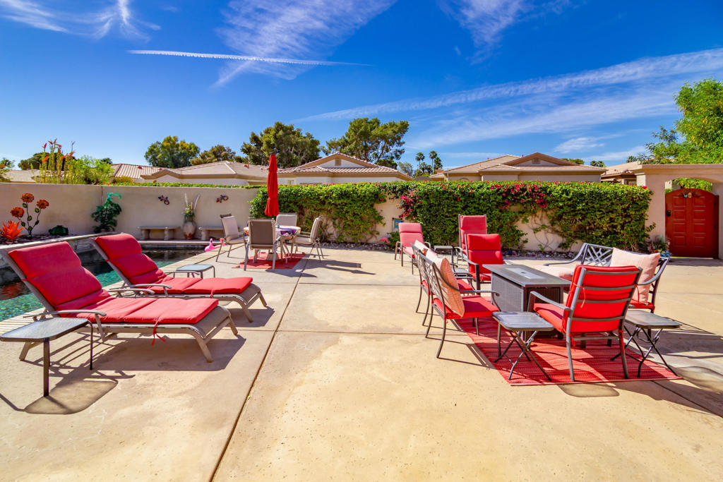 Welcome to Avondale Country Club a superb golfing community which is ideally located in the heart of Palm Desert. Just minutes from the renowned Indian Wells Tennis Garden, vibrant dining, shopping along El Paseo Drive, the La Quinta Arts Festival, and all that the Desert has to offer.This stunning 3-bedroom, 3-bath home is designed for both comfort and entertaining. Step outside to your expansive patio featuring a beautiful saltwater pool and dining area that is enclosed by remote control high-end screens–ideal for hosting friends and enjoying desert living. Inside, the open-concept living and dining area boasts high ceilings and a cozy fireplace. The kitchen is equipped with newer double ovens, perfect for home chefs.The spacious primary suite offers a large ensuite bath, while one of the guest rooms has been thoughtfully converted into a home office with a Murphy bed for added flexibility.The still low HOA dues include a social membership to the recently renovated clubhouse. Residents also can have limited access to the golf course without becoming members. This course is perfect for players of all skill levels. The community offers exceptional amenities including a clubhouse, two dining venues, cocktail lounge, fitness center, pickleball courts, dog park, and active men’s and women’s golf and social groups. (golf membership available separately). Located within the IID electrical district, you’ll also benefit from lower utility costs.Surrounded by breathtaking mountain views of the Coachella Valley, this home is the perfect blend of luxury, lifestyle, and location. Come experience it for yourself–your desert dream home awaits.