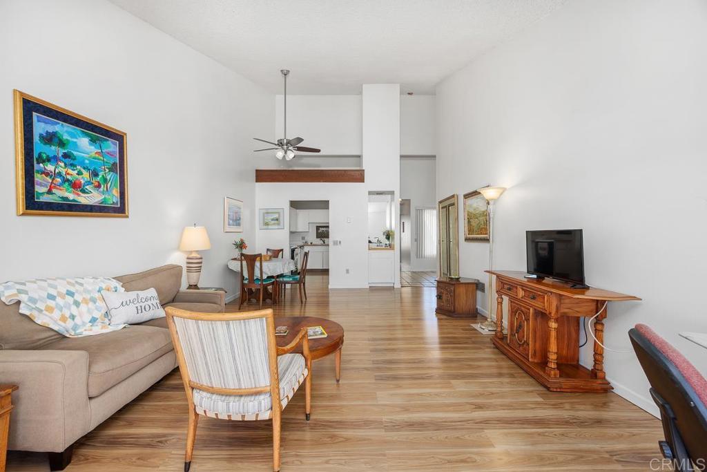 Experience the ultimate Southern California lifestyle in this stunning 2BR/2BA residence, perfectly situated in a premium, quiet location within one of Carlsbad’s most enchanting park-like communities. Just 0.5 miles from spectacular sandy beaches and the iconic Carlsbad Sea Wall, this rare single-level floor plan offers unmatched convenience and coastal luxury. The airy, open-concept design features vaulted ceilings and designer vinyl plank flooring, bathed in natural light through expansive windows and balcony sliders. The kitchen is well-equipped with a double sink and integrated recycling center, while a versatile built-in alcove bar provides the perfect footprint for a coffee station or custom cabinetry. Step through oversized sliders to your private patio a serene “outdoor living room” with an elevated perspective of the neighborhood. Beyond the three parking spaces, this home offers a storage advantage virtually unheard of this close to the coast, including a rare attic and built-in overhead closet compartments. Leave the car behind and take a short, scenic walk to Carlsbad Village for artisan boutiques and award-winning dining. With the train station nearby for easy commuting, this is coastal living at its finest.